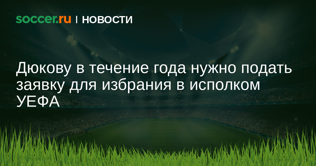 Президенту Российского футбольного союза (РФС) и члену исполнительного комитета Союза европейских футбольных ассоциаций (УЕФА) Александру Дюкову необходимо подать заявку для переизбрания в орган не менее чем за два месяца до конгресса организации в 2025 году. Об этом сообщили в УЕФА со ссылкой на устав организации.