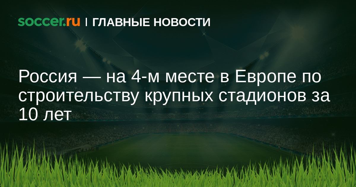 Россия заняла 4-е место в Европе по количеству построенных больших стадионов за последние 10 лет, сообщает в своём отчёте УЕФА.