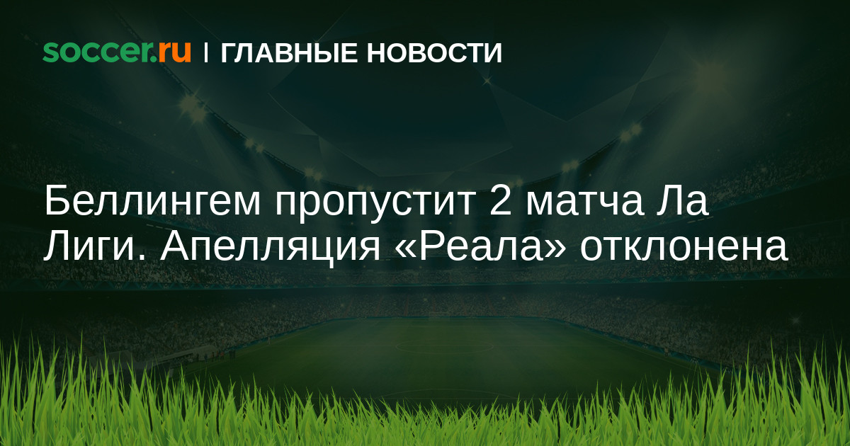 Апелляция мадридского клуба на обжалование решения о дисквалификации англичанина отклонена. Суд оставил в силе своё решение. Таким образом, Беллингем пропустит матчи чемпионата Испании против «Сельты» и «Осасуны».