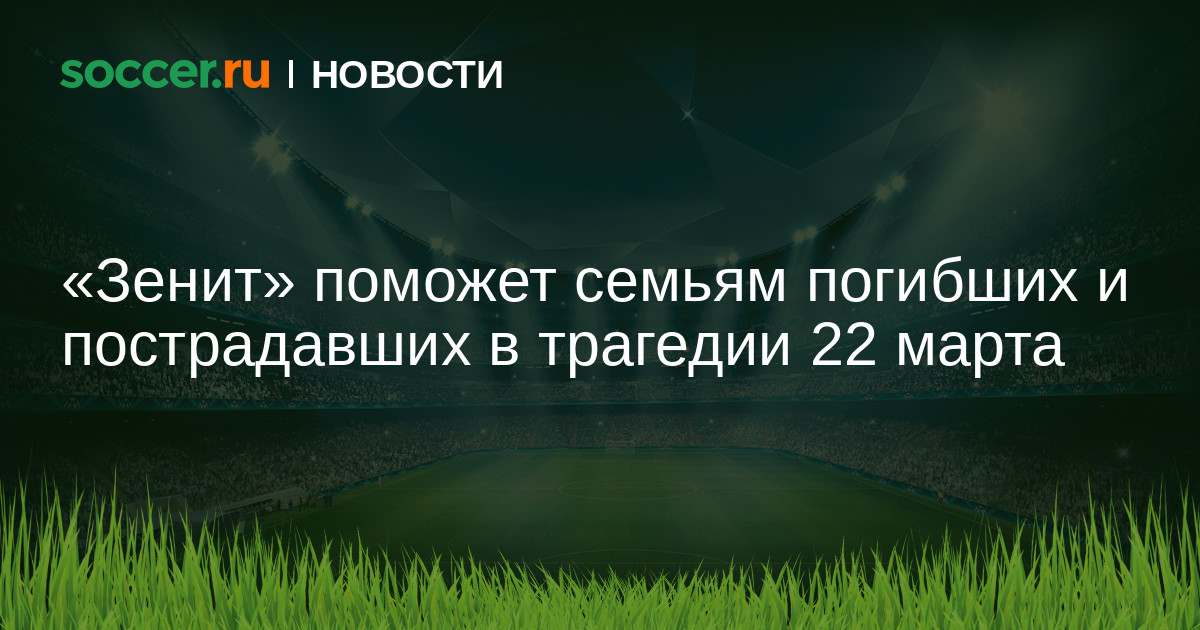 Пресс-служба «Зенита» сообщает, что клуб поможет семьям погибших и пострадавших в трагедии 22 марта.