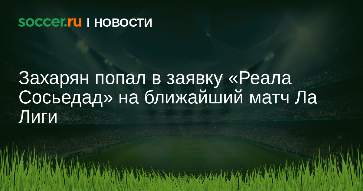 Полузащитник сборной России Арсен Захарян был включён в заявку «Реала Сосьедад» на игру 34-го тура Ла Лиги против «Лас-Пальмаса». Сан-себастьянцы занимают 6-е место в турнирной таблице, а клуб из Лас-Пальмас-де-Гран-Канарии находится на 14-й строчке.