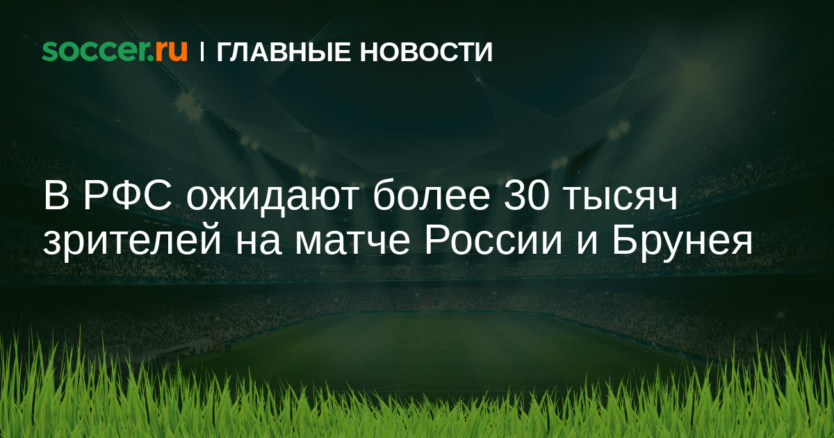 На товарищеском матче между сборными России и Брунея ожидается более 30 тысяч зрителей. Об этом источнику рассказали в службе коммуникаций Российского футбольного союза (РФС).
