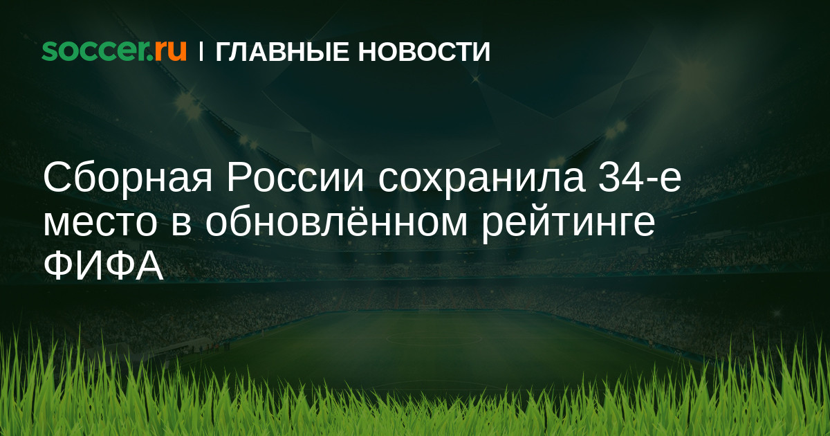 В обновлённом рейтинге ФИФА сборная России сохранила за собой 34-ю строчку.