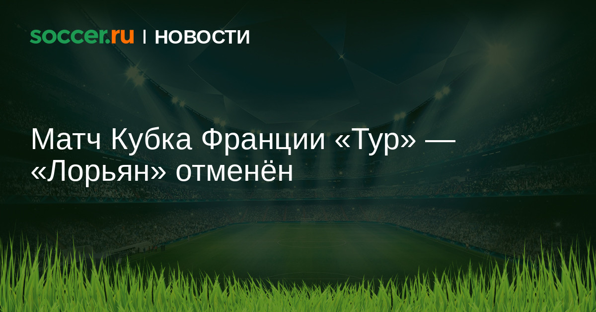 Федерация футбола Франции сообщила о том, что матч 1/32 финала Кубка страны между «Туром» и «Лорьяном» не состоится.