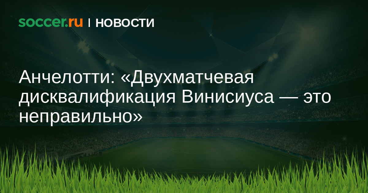Главный тренер «Реала» Карло Анчелотти прокомментировал дисквалификацию нападающего команды Винисиуса Жуниора на два матча Ла Лиги.
