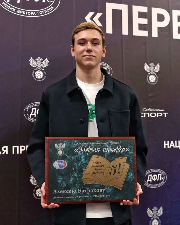 В четверг прошла церемония вручения премии «Первая пятёрка-2024». Обладателем приза стал полузащитник московского «Локомотива» Алексей Батраков.