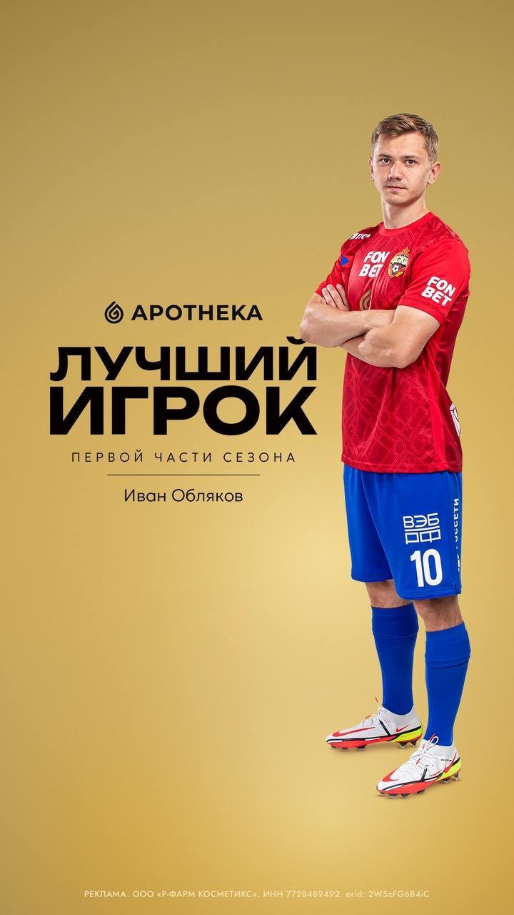 Пресс-служба ЦСКА сообщает, что полузащитник Иван Обляков признан лучшим футболистом первой части сезона в клубе.