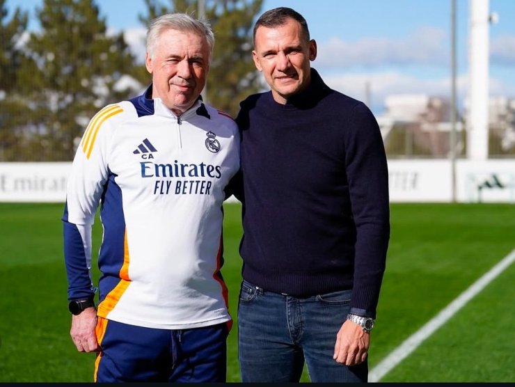 Украинец встретился с главным тренером «сливочных» Карло Анчелотти, под руководством которого он выступал за «россонери».