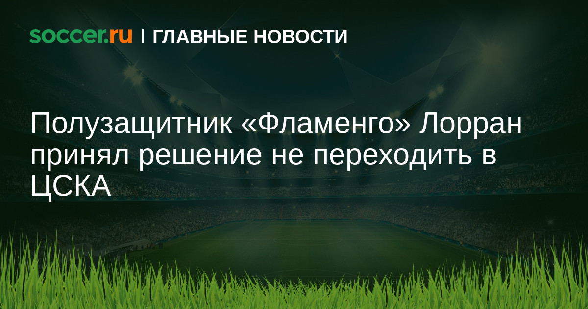 Полузащитник клуба «Фламенго» Лорран решил отказаться от трансфера в московский ЦСКА. Игрок продолжит карьеру в бразильском клубе.