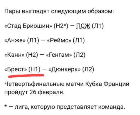 Полный список четвертьфиналистов Кубка Франции составили «Стад Бриошин», ПСЖ, «Анже», «Реймс», «Канн», «Генгам», «Брест» и «Дюнкерк».