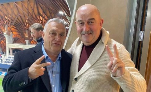 В VIP-ложе стадиона «Панчо Арена» специалист встретился с премьер-министром Венгрии Виктором Обраном, который болеет за «Академию Пушкаша». Черчесов прокомментировал: