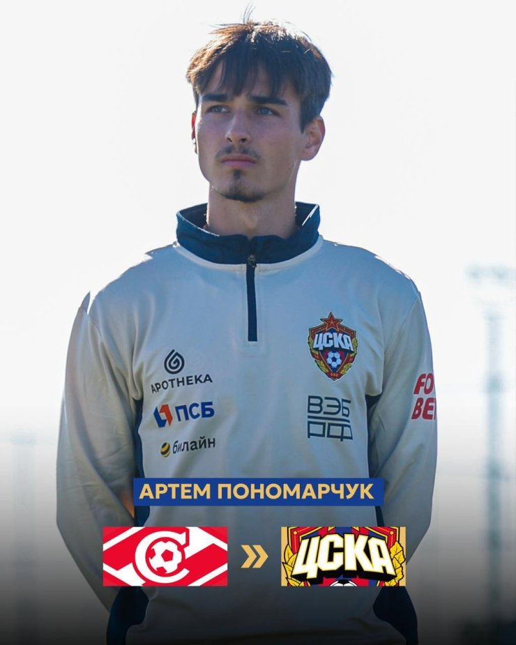 Полузащитник «Спартака-2» и юношеской сборной России Артём Пономарчук стал игроком ЦСКА. Контракт рассчитан до конца 2027 года и имеет опцию продления ещё на год.
