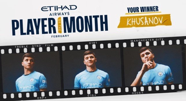 Защитник Абдулкодир Хусанов признан лучшим игроком «Манчестер Сити» по итогам февраля.