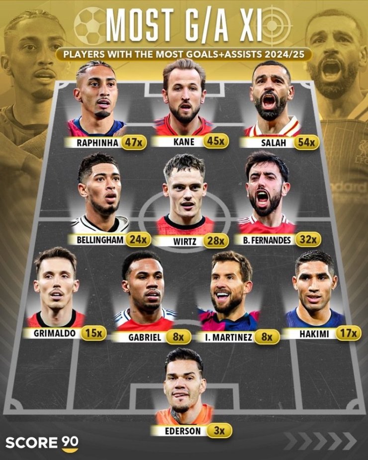 Опубликована сборная лучших игроков на своих позициях в топ-5 лиг Европы по системе «гол+пас».