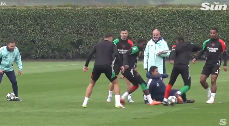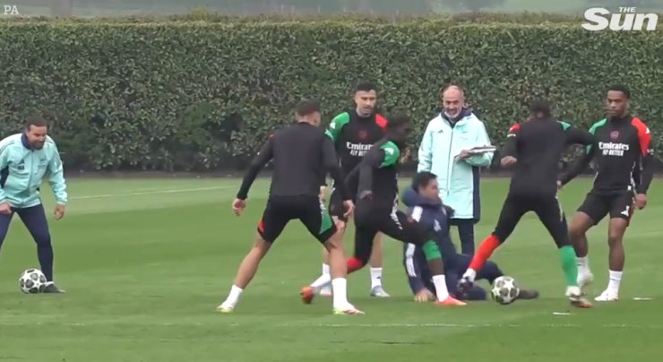Главный тренер «Арсенала» Микель Артета принял участие в тренировке команды перед ответным матчем 1/4 финала плей-офф Лиги чемпионов с «Реалом».