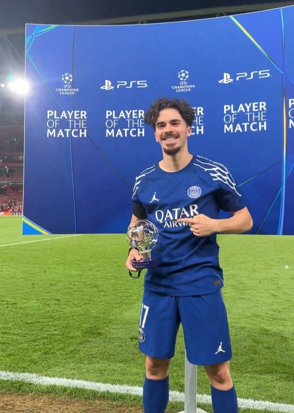 Полузащитник ПСЖ Витинья признан лучшим игроком первого матча полуфинала Лиги чемпионов против «Арсенала» (1:0).