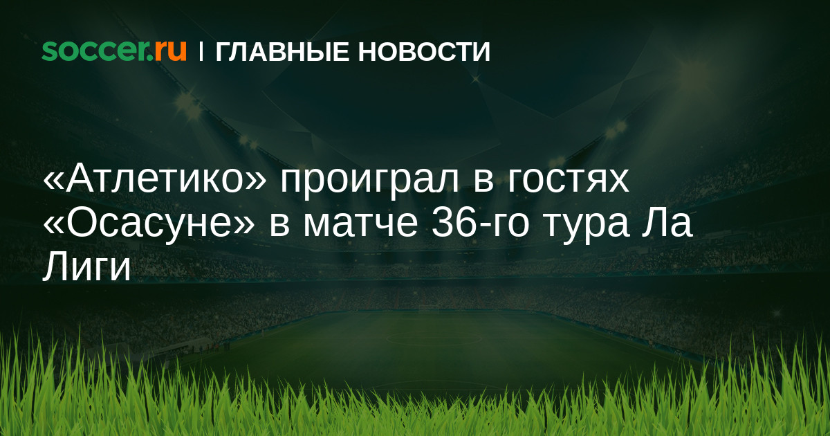 Завершился матч 36-го тура испанской Ла Лиги, в котором «Атлетико» проиграл в гостях «Осасуне» со счётом 2:0.