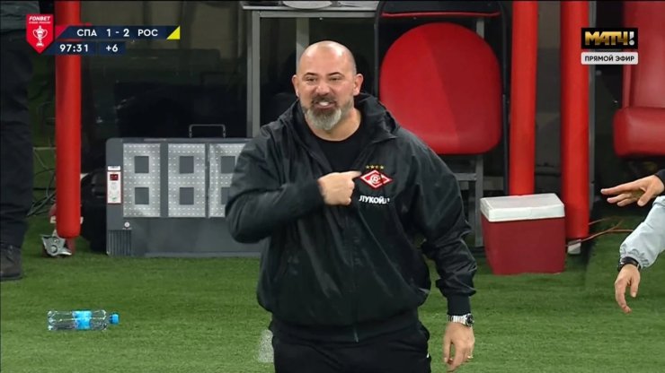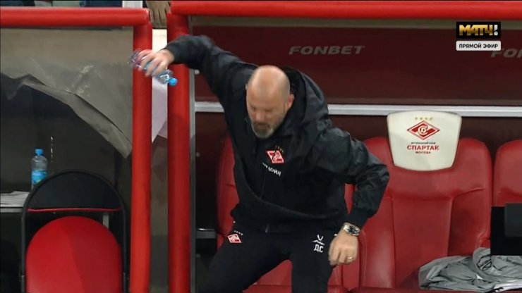 Наставник москвичей резко отреагировал на решение главного арбитра Кирилла Левникова зафиксировать у его команды нарушение правил в атаке. Он вскочил со скамейки и швырнул об землю бутылку с водой, после чего начал что-то выкрикивать в адрес судьи. Даже после предупреждения Станкович продолжил кричать и начал указывать на эмблему «Спартака» на груди, после чего его удалили.