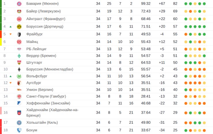 В стыковых матчах за право остаться в высшем дивизионе сыграет «Хайденхайм». Во Вторую Бундеслигу вылетели «Хольштайн» и «Бохум».