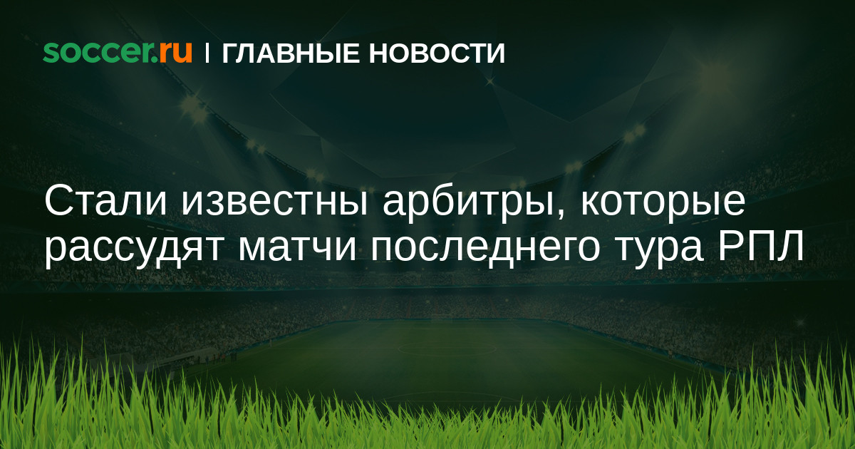 Российский футбольный союз назначил арбитров и инспекторов на матчи 30-го тура Российской Премьер-Лиги.