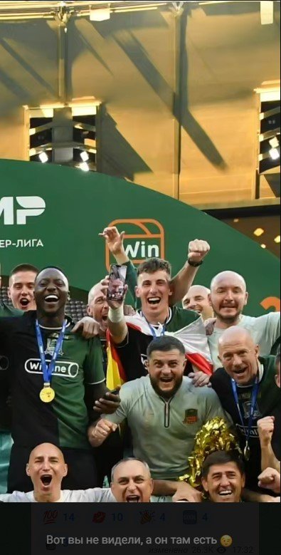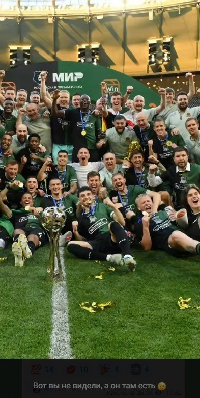 Голкипер «Пари Сен-Жермен» Матвей Сафонов попал на общую фотографию «Краснодара» после победы «быков» в Российской Премьер-Лиге.