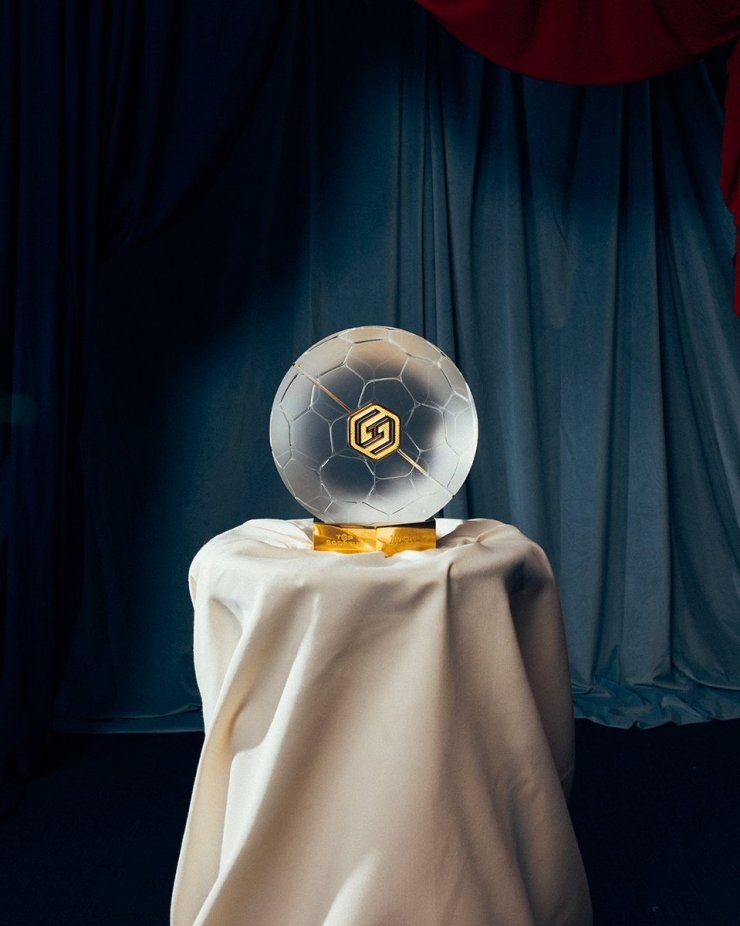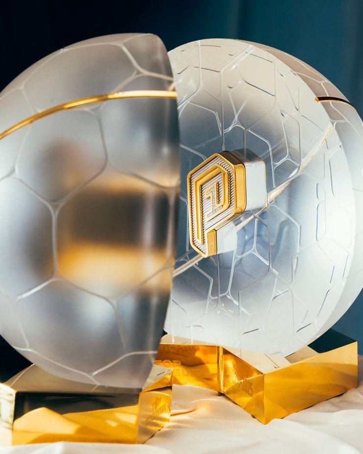 Это две полусферы, которые соединяются в один футбольный мяч. На одной из них написана буква «S» и она предназначена для лучшего бомбардира, а на другой — буква «P», и она уйдёт лучшему распасовщику.