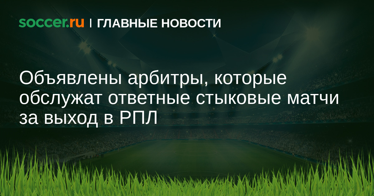 Российский футбольный союз назначил арбитров на ответные стыковые матчи за право выступить в Российской Премьер-Лиге.