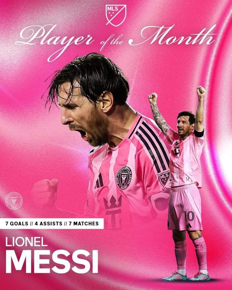 Нападающий «Интер Майами» Лионель Месси признан лучшим футболистом МЛС по итогам мая.