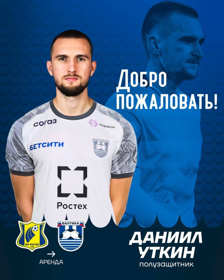 Между футбольными клубами «Балтика» и «Ростов» достигнута договорённость об аренде полузащитника Даниила Уткина. Соглашение заключено до 30 июня 2026 года.