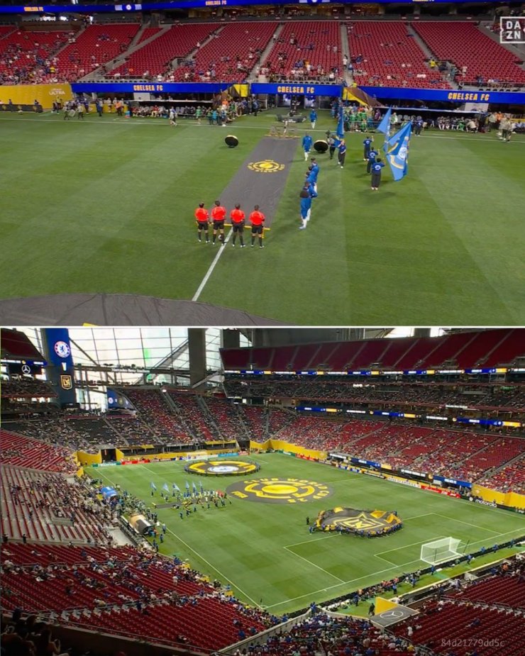 Игра между английским и американским клубом проходит при полупустых трибунах.