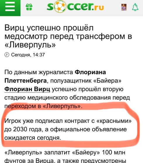 «Ливерпуль» заплатит «Байеру» 100 млн фунтов за Вирца, а также предусмотрены бонусы в размере 16,5 млн фунтов.