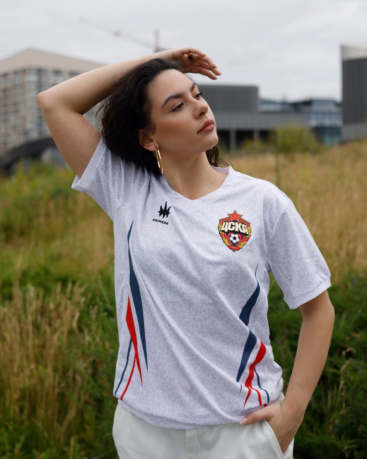 Дизайн гостевого комплекта вдохновлен памятным 2005-м, когда армейцы завоевали Кубок УЕФА. Форма выполнена в белом цвете с красно-синими вставками по бокам, а узоры на футболке напоминают текстуру главного трофея в истории клуба. В форме ПФК ЦСКА использован передовой материал жаккард – его специальное плетение делает форму легкой, прочной и износостойкой. Комплект имеет технологию отведения влаги LIQUIDate®PRO, благодаря которой влага равномерно распределяется по всей поверхности ткани формы, что способствует ее быстрому испарению.