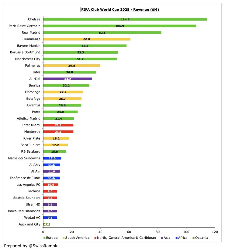 Опубликован заработок всех команд по итогам Клубного чемпионата мира.