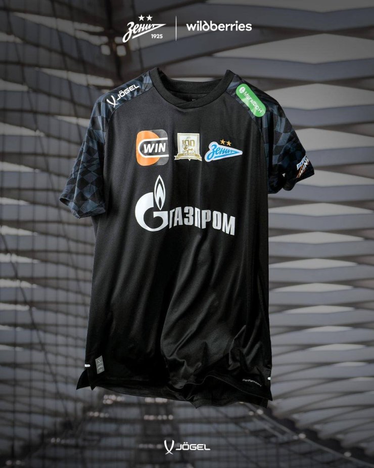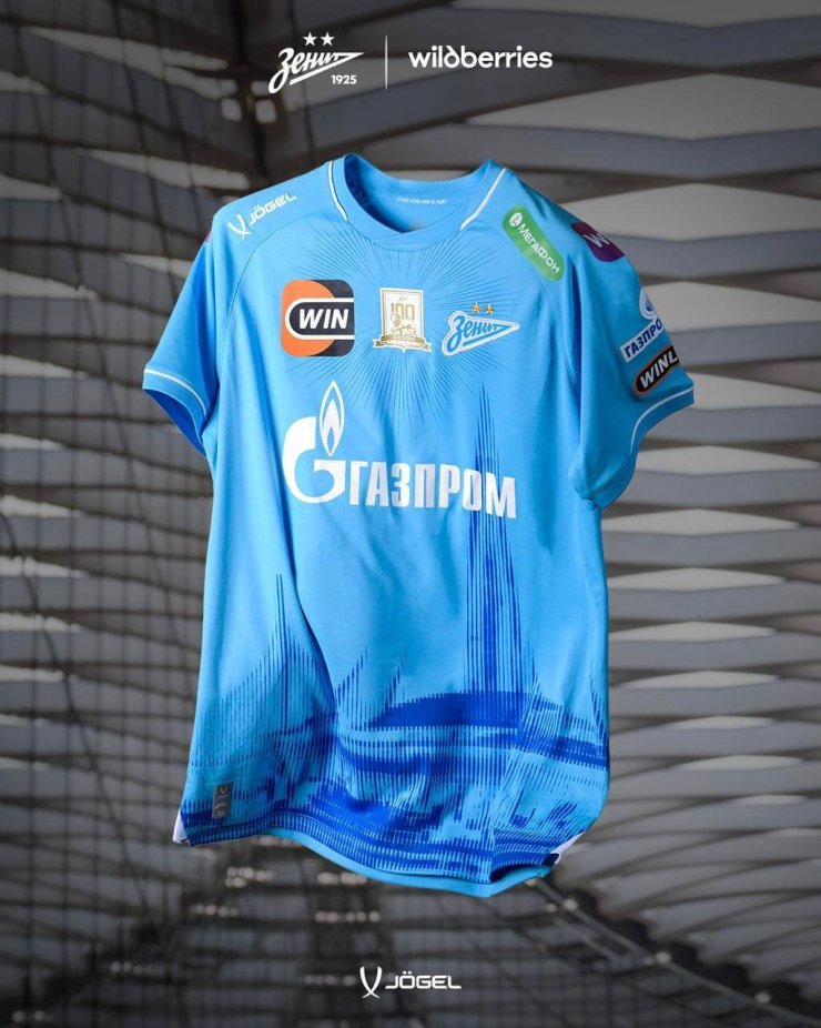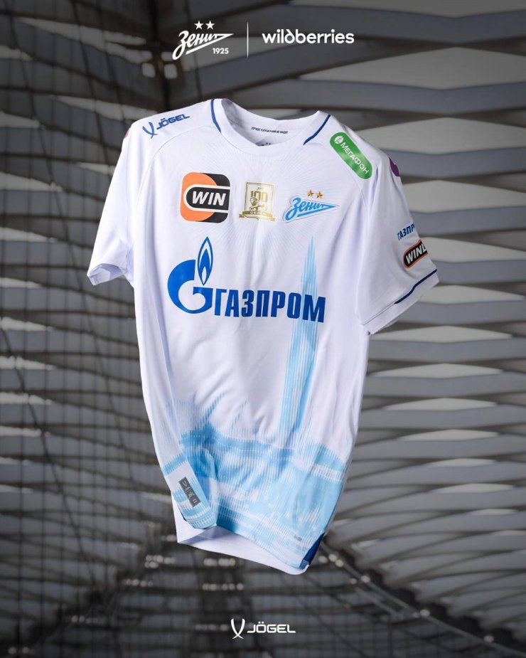 Убрать с белой формы всю рекламу, кроме "Газпром", оставить, так уж и будет цифру 100 и стрелку и на фоне Лахта центра...