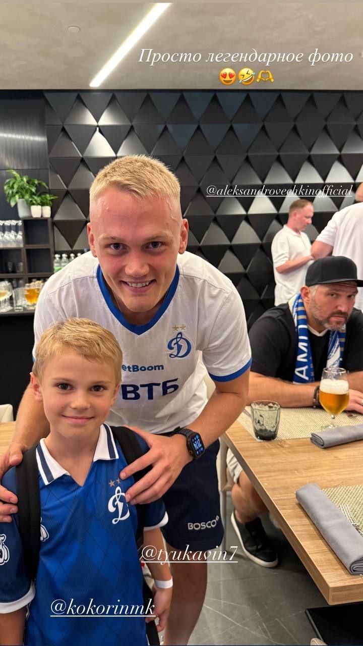 Сын нападающего кипрского «Ариса» Александра Кокорина Майкл сделал фотографию с форвардом московского «Динамо» Константином Тюкавиным. Также в кадр попал хоккеист «Вашингтон Кэпиталз» Александр Овечкин.