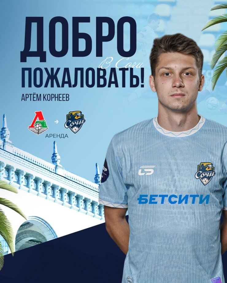 Пресс-служба «Сочи» объявила об аренде нападающего «Локомотива» Артёма Корнеева.