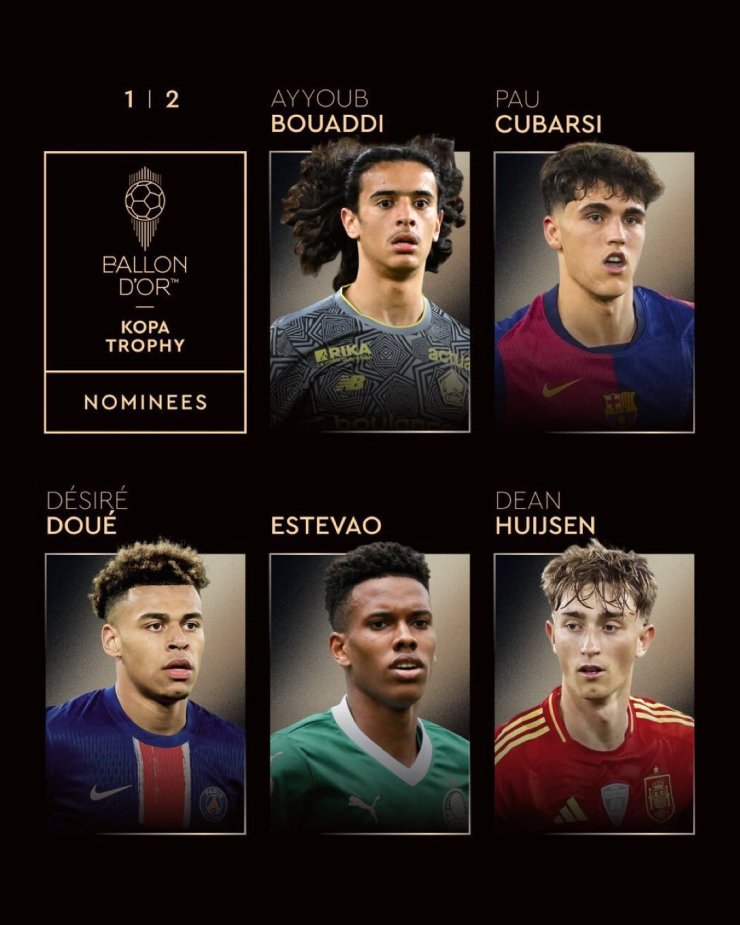 Объявлены претенденты на «Трофей Копа», который вручается журналом France Football лучшему молодому футболисту до 21 года.