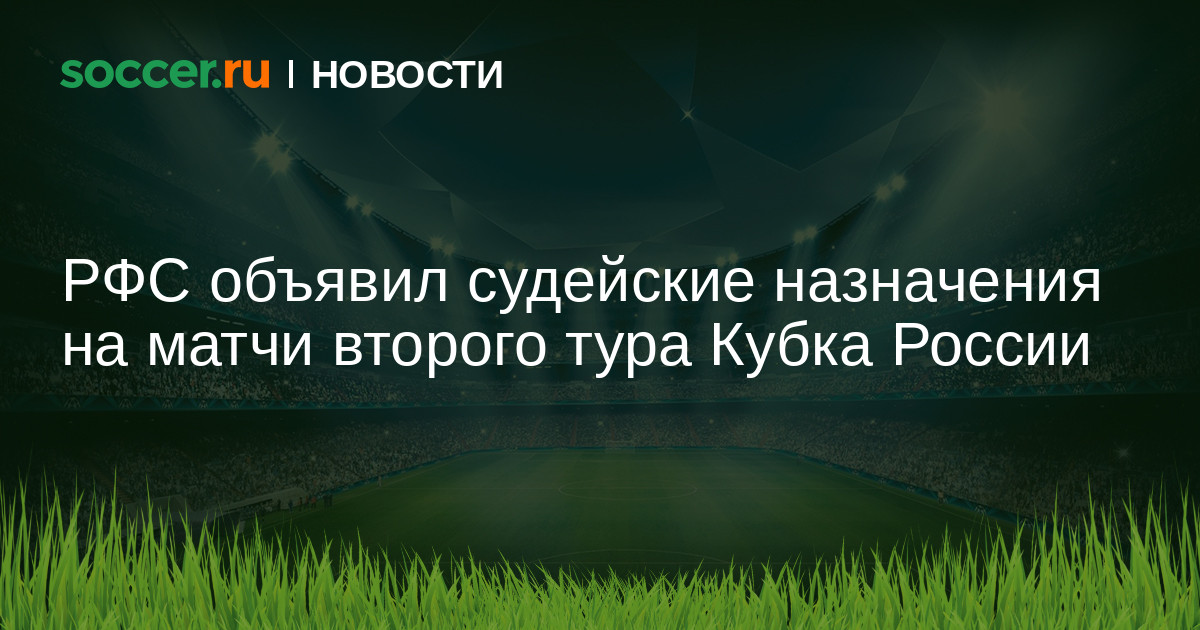 Российский футбольный союз опубликовал судейские назначения на матчи второго тура группового этапа Пути РПЛ Кубка России.