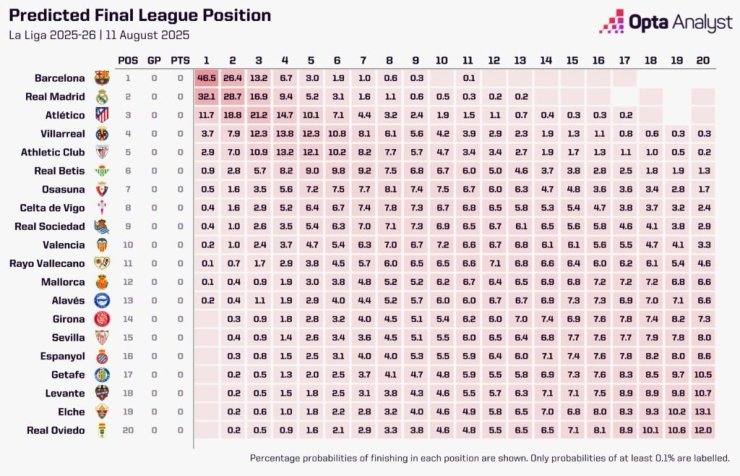 Статистический ресурс Opta оценил шансы команд на чемпионство в Ла Лиге.
