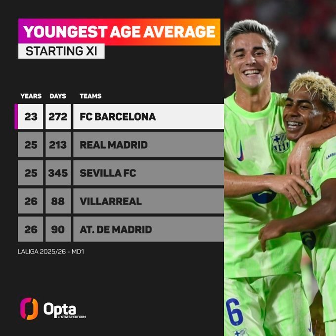 Возраст футболистов «Барселоны» и «Реала» оказался самым низким среди всех клубов в первом туре чемпионата Испании.