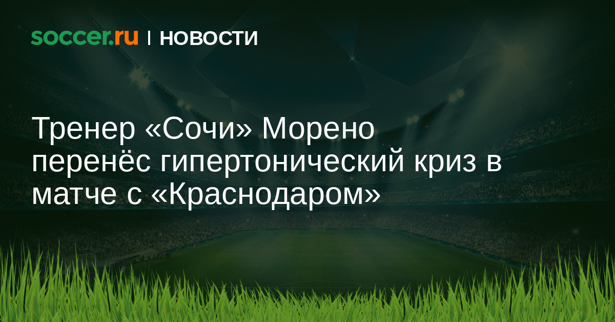 Главный тренер «Сочи» Роберт Морено перенёс гипертонический криз во время матча группового этапа Пути РПЛ Кубка России против «Краснодара» (2:4).