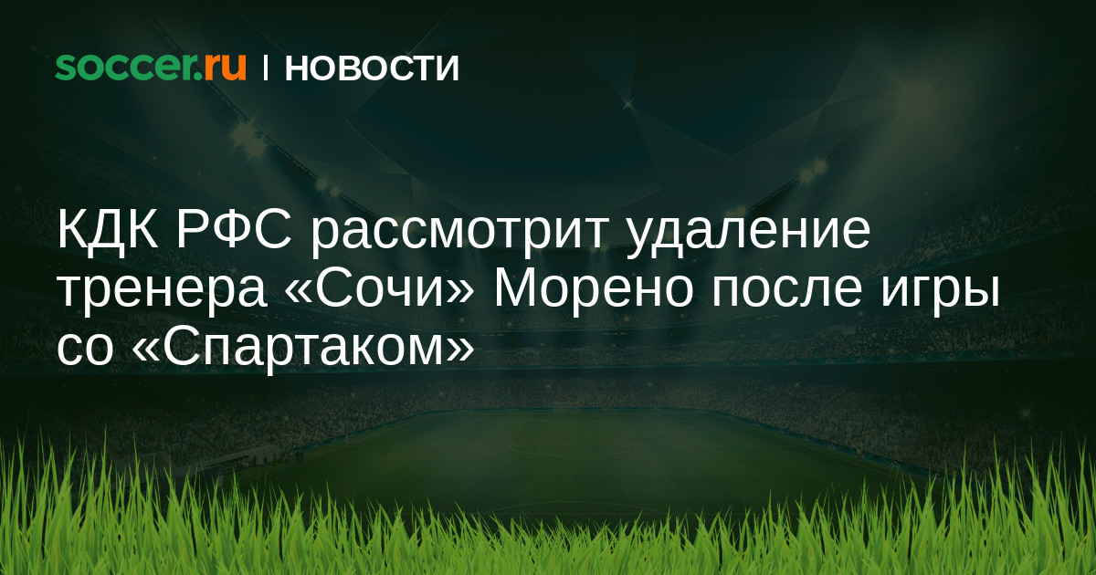 Контрольно-дисциплинарный комитет Российского футбольного союза (КДК РФС) рассмотрит поведение главного тренера «Сочи» Роберта Морено в матче седьмого тура Мир — Российской премьер-лиги (РПЛ) против московского «Спартака». Об этом сообщил глава комитета Артур Григорьянц.