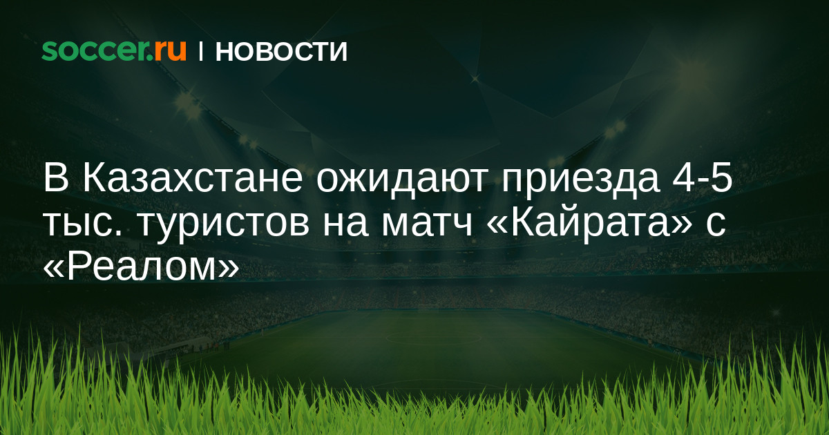Казахстан ожидает, что на матч «Кайрата» из Алма-Аты, прошедшего в общий этап Лиги чемпионов, с испанским «Реалом» приедут 4-5 тысяч туристов. Об этом рассказал министр туризма и спорта Казахстана Ербол Мырзабосынов после заседания обеих палат парламента.