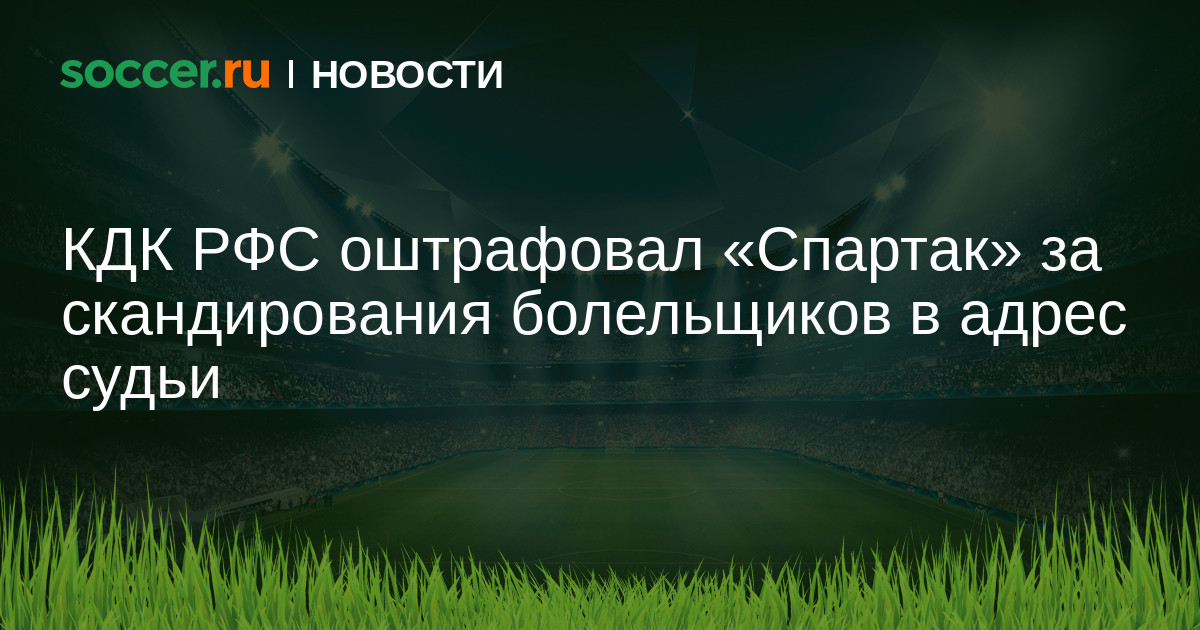 Контрольно-дисциплинарный комитет Российского футбольного союза (КДК РФС) оштрафовал московский «Спартак» за скандирования болельщиков в адрес судьи на матче седьмого тура Мир — Российской премьер-лиги (РПЛ) с «Сочи». Об этом журналистам сообщил глава комитета Артур Григорьянц.
