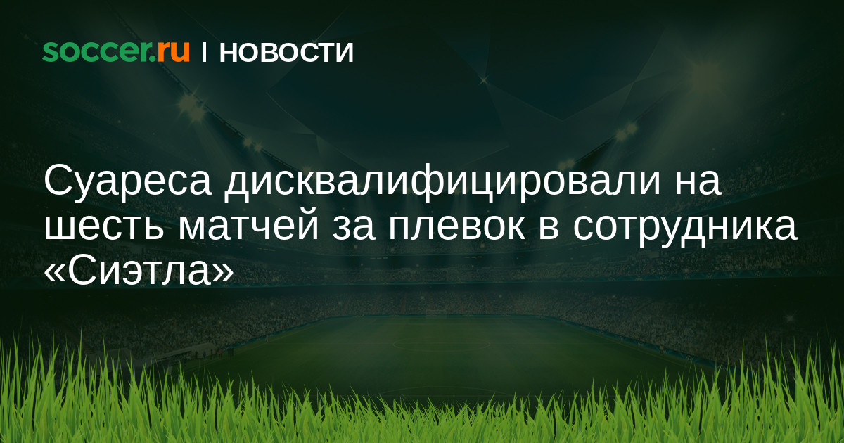 Уругвайский нападающий футбольного клуба «Интер Майами» Луис Суарес дисквалифицирован на шесть матчей за плевок в одного из сотрудников клуба «Сиэтл Саундерс» после поражения в финальном матче Кубка лиг. Об этом сообщило агентство AP.