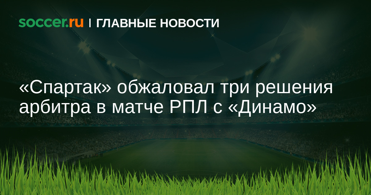 Московский футбольный клуб «Спартак» обратился в экспертно-судейскую комиссию при президенте Российского футбольного союза (ЭСК РФС) по трем эпизодам гостевого матча восьмого тура Российской премьер-лиги (РПЛ) против столичного «Динамо». Об этом сообщает пресс-служба клуба.