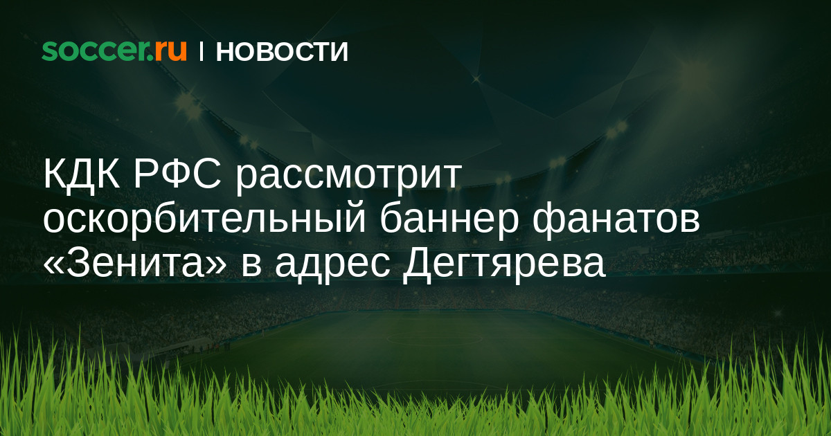 Контрольно-дисциплинарный комитет Российского футбольного союза (КДК РФС) на следующей неделе рассмотрит оскорбительный баннер болельщиков петербургского «Зенита» в адрес министра спорта РФ Михаила Дегтярева. Об этом журналистам заявил глава комитета Артур Григорьянц.