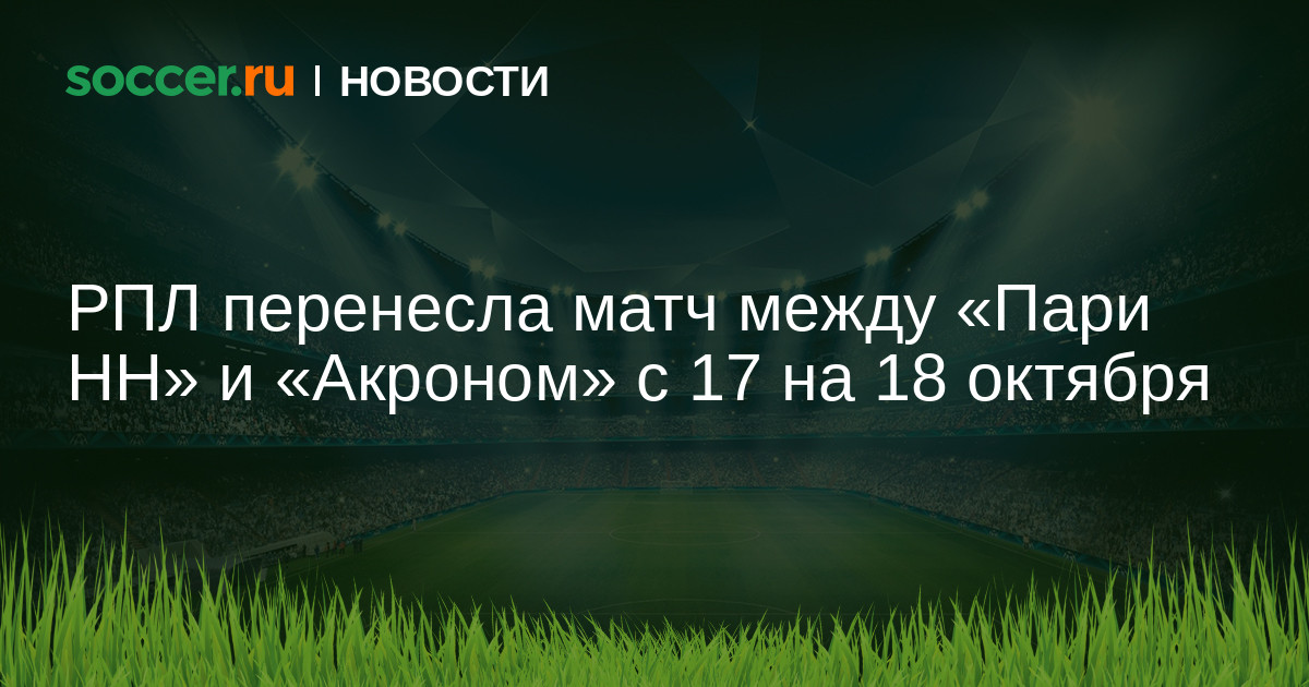 «В связи с обращением клуба и по согласованию с основным вещателем дата и время начала матча 12-го тура РПЛ „Пари НН“ — „Акрон“ изменены. Игра пройдет 18 октября в 13:00 по Москве», — говорится в сообщении.