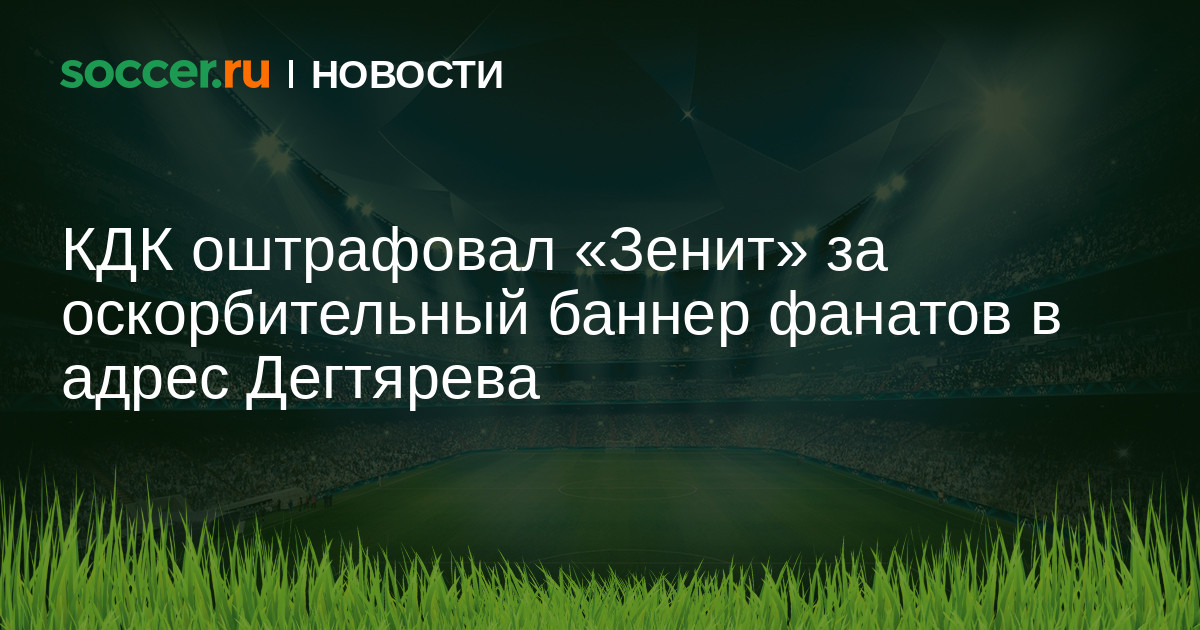 Контрольно-дисциплинарный комитет Российского футбольного союза (КДК РФС) оштрафовал петербургский «Зенит» на 500 тыс. рублей за оскорбительный баннер болельщиков команды в адрес министра спорта РФ Михаила Дегтярева. Об этом журналистам сообщил глава комитета Артур Григорьянц.