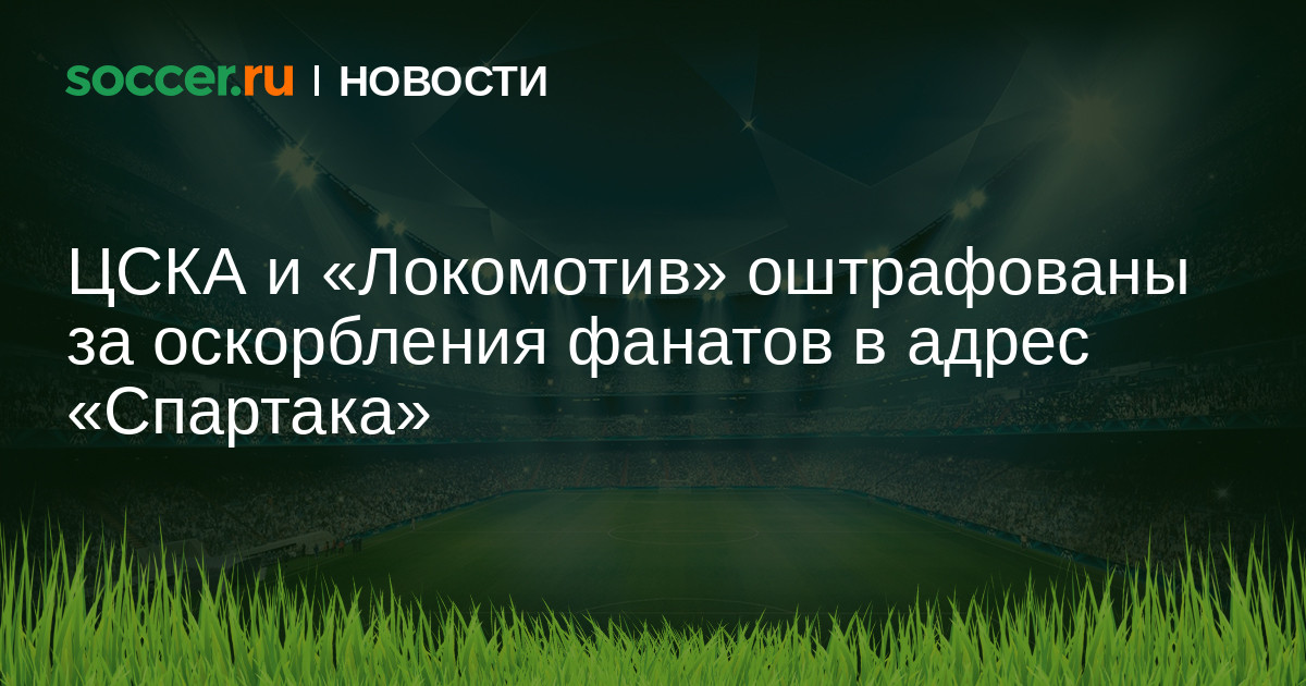 Контрольно-дисциплинарный комитет Российского футбольного союза (КДК РФС) оштрафовал московские ЦСКА и «Локомотив» за оскорбительные скандирования болельщиков в адрес столичного «Спартака» в матче группового этапа «пути Российской премьер-лиги» Кубка России. Об этом журналистам рассказал глава комитета Артур Григорьянц.